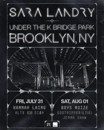 Sara Landry - Saturday takes place at Under the K Bridge in New York City, Unknown on August 1, 2026. Featuring Sara Landry, Boys Noize. Techno, Electro.