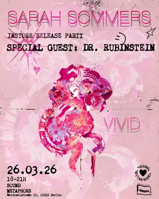 Sarah Sommers - VIVID Record Release Party 2026 takes place at the renowned Sound Metaphors in Berlin, Germany on Thursday, March 26, 2026, featuring Sarah Sommers and Dr. Rubinstein. This event brings together artists and fans who share a passion for dance music culture and Techno, Acid sounds.