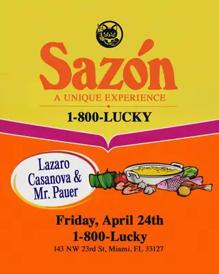 Sazón with Lazaro Casanova & Mr. Pauer takes place at 1-800-Lucky in Miami, United States on April 24, 2026. Featuring Lazaro Casanova. House and Afro House sounds all night.