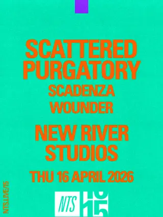 Scattered Purgatory, Scadenza, Wounder (NTS 15) on April 16, 2026 at New River Studios, London features Scattered Purgatory and Wounder performing DJ sets.