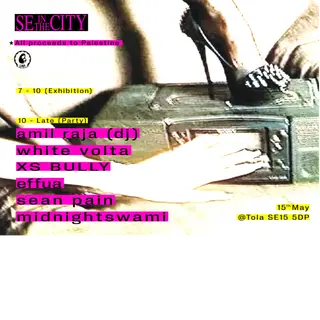 SE IN THE CITY: Fundraiser on May 15, 2026 at Tola, London features XS BULLY, effua, sean pain and midnightswami performing club DJ sets.