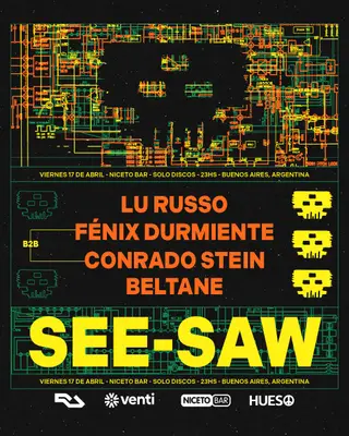 SEE SAW 17 de abril will take place at Niceto Bar in Buenos Aires, Argentina, on April 17, 2026. The event will feature techno and house music. The lineup includes Conrado Stein, a notable artist in the electronic music scene. He is known for his work within the techno genre and has gained recognition for his distinctive productions.