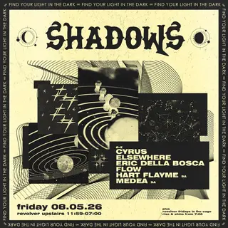 SHADOWS AT REVOLVER on May 8, 2026 at Revolver Upstairs, Melbourne features electronic music performances techno DJ sets.