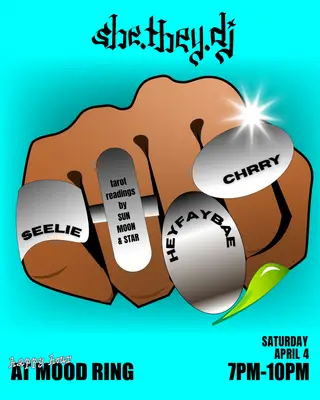 she.they.dj takes place at Mood Ring in New York City, United States on April 4, 2026. Featuring SEELIE.. House and Club sounds all night.