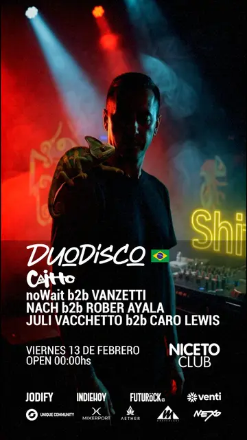 El primer encuentro de Shift en uno de los clubes mas importantes de la ciudad. Por eso, nos acompañan 2 artistas increíbles, nuestro amigo de la casa Duodisco, de Brasil, con una trayectoria intachable de 20 años, sellado en los labels mas importantes. Y por primera vez Caitto, con una increíble carrera pisando con sus tracks varias veces el top 100 de Beatport. Acompañan a esta cabina nuestros residentes y artistas invitados .