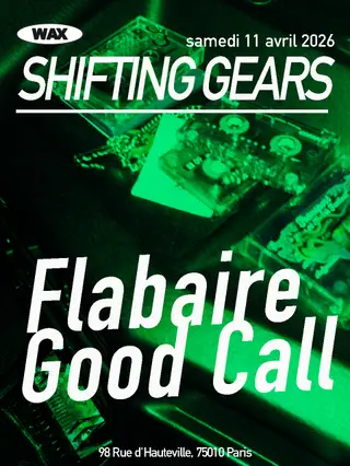 Shifting gears takes place at Wax Bar in Paris, France on April 11, 2026. Featuring Flabaire, Good Call. Deep House and Disco sounds all night.