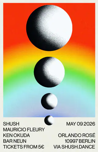 SHUSH // Mauricio Fleury, Ken Okuda, Orlando Rosé takes place at Bar Neun in Berlin, Germany on May 16, 2026. Featuring Mauricio Fleury, Ken Okuda, Orlando Rosé. House and Disco sounds all night.