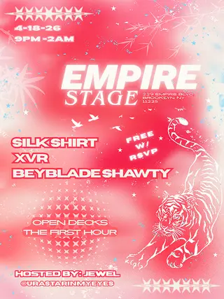 silkshirt, xvr & BEYBLADE SHAWTY takes place at Empire Stage in New York City, United States on April 18, 2026. Featuring BEYBLADE SHAWTY. House and Club sounds all night.