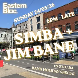 Simba x Jim Bane Bank Holiday Special takes place at Eastern Bloc Records in Manchester, United Kingdom on May 24, 2026. Featuring Jim Bane. Deep House and Funk / Soul sounds all night.