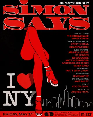 SIMON SAYS w Daisy O'Dell and Sean Patrick takes place at Gabriela in New York City, United States on May 1, 2026. Featuring Daisy O'Dell, Sean Patrick. Electro and New Wave sounds all night.