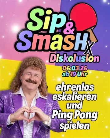 SIP&SMASH X DISKOLUSION takes place at PETER EDEL in Berlin, Germany on Friday, March 6, 2026.
