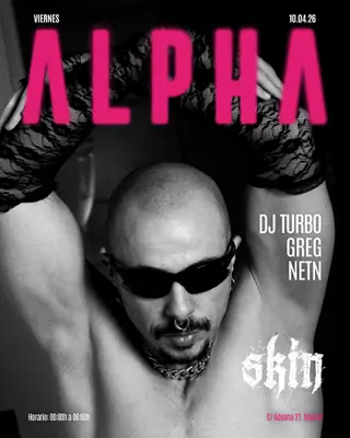 Skin ALPHA: DJ TURBO + GREG + NETN takes place at Skin in Madrid, Spain on April 10, 2026. Featuring DJ TURBO, Greg (5), NETN.