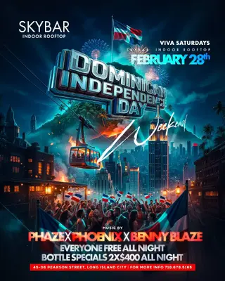 Skybar Rooftop Saturdays – Viva Saturdays - Dominican Independence Day Wknd takes place at Skybar Rooftop and Lounge in New York, United States on February 28, 2026.
