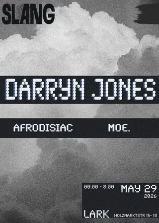SLANG with Darryn Jones, Moe & Afrodisiac takes place at Lark in Berlin, Germany on May 29, 2026. Featuring Darryn Jones, moe.. House and Disco sounds all night.