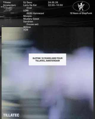 SLPFNK 15 YEARS AMS TOUR - WEEKENDER - TILLATEC takes place at TILLATEC in Amsterdam, Netherlands on May 24, 2026. Featuring DJ Senc, Larry De Kat, LORI (NL), Hannecart and 4 more.