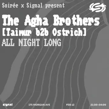 Soiree x Signal present: Taimur b2b Ostrich takes place at Signal in New York, United States on Thursday, February 12, 2026. Featuring Soiree, Taimur, Ostrich.