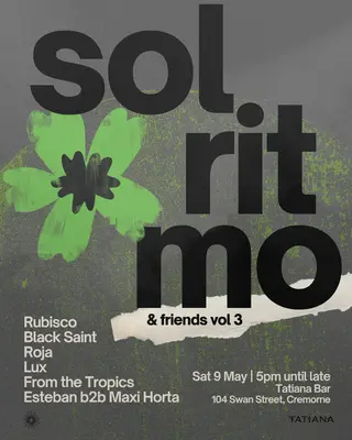 Sol Ritmo & Friends Vol 3 on May 9, 2026 at Lady T Bar Richmond, Melbourne features electronic music performances tech house DJ sets.