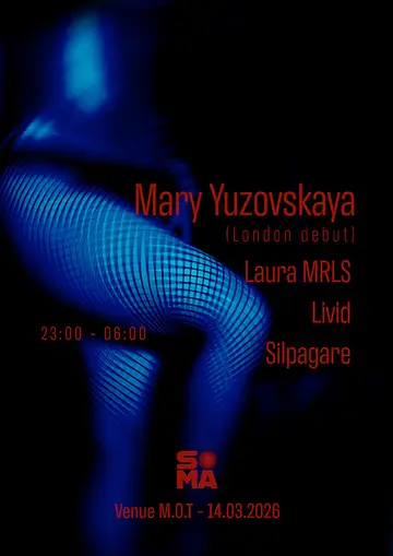 SOMA PEOPLE x Mary Yuzovskaya – London Debut with Resident Laura MRLS, Livid & Silpagare takes place at M.O.T in London, United Kingdom on Saturday, March 14, 2026. Featuring Mary Yuzovskaya, Laura MRLS, Livid (UK), Silpagare. Techno, Industrial.
