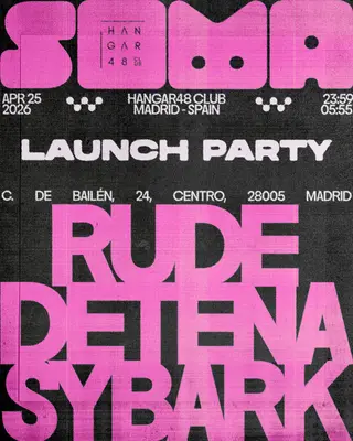 Set at Hangar48 Club, SOMA: Rude, Detena, Sybark 2026 brings together artists and fans in Madrid on Saturday, April 25, 2026. This event brings together artists and fans who share a passion for dance music culture and Tech House sounds. Hangar48 Club has hosted Tech House events in Madrid as part of the area's regular club programming. It draws fans seeking authentic Tech House music in Madrid. Designed for a discerning audience, Hangar48 Club's programming draws fans of Tech House music across Madrid. The production is designed to showcase the depth and diversity of contemporary electronic music.