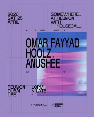 somewhere... & House Call return to Reunion DXB takes place at TBA - Reunion DXB in Dubai, United Arab Emirates on April 25, 2026. Featuring Omar Fayyad, Hoolz. Minimal and Minimal Techno sounds all night.