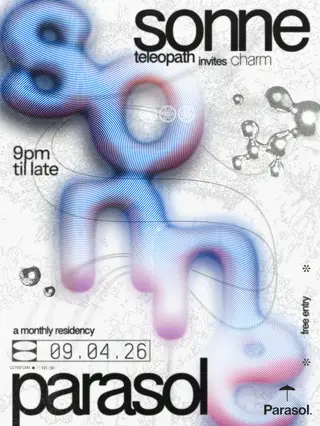 SONNE - free entry takes place at Parasol Bar in London, United Kingdom on April 9, 2026. Featuring teleopath. House and Italo Disco sounds all night.