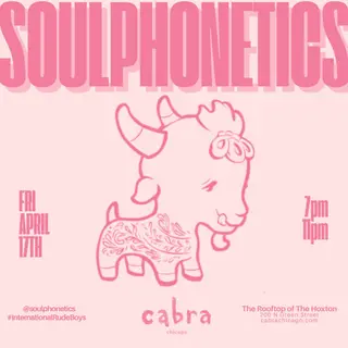 Soulphonetics - Rooftop takes place at Cabra in Chicago on April 17, 2026. The event features the artist Soulphonetics, known for their contributions to the deep house and disco genres. Soulphonetics has a distinctive style that blends soulful melodies with rhythmic grooves, creating a sound that resonates well within the dance music community. This event will showcase deep house and disco music, highlighting the versatility of these genres through the performance of Soulphonetics.