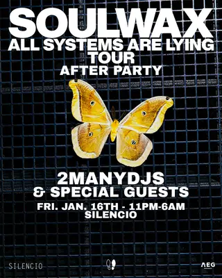 Soulwax AFTERPARTY: 2MANYDJS, SoMe & GUESTS takes place at Silencio in Paris, France on January 16, 2026. Featuring Soulwax.