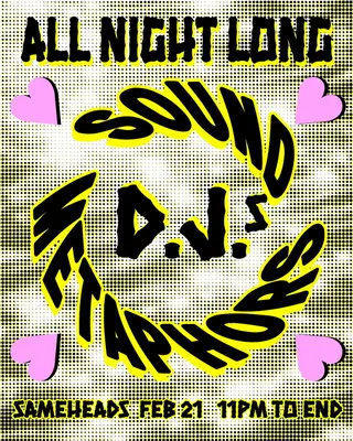 ♡ Sound Metaphors DJs - ALL NIGHT LONG! ♡ takes place at Sameheads in Berlin, Germany on February 21, 2026. Featuring Sound Metaphors Djs. Balearic and Disco sounds all night.