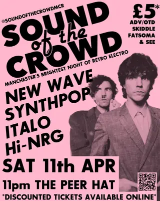 Sound Of The Crowd: Manchester's Brightest Night Of Retro Electro takes place at The Peer Hat in Manchester, United Kingdom on April 11, 2026. Italo Disco and New Wave sounds all night.