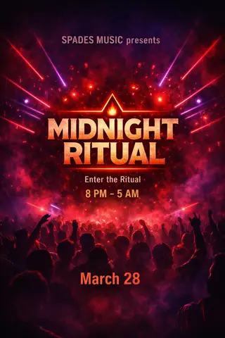 Spades Music presents: Midnight Ritual takes place at TBA - Secret Location in Paris, France on March 28, 2026. House, Afro House.