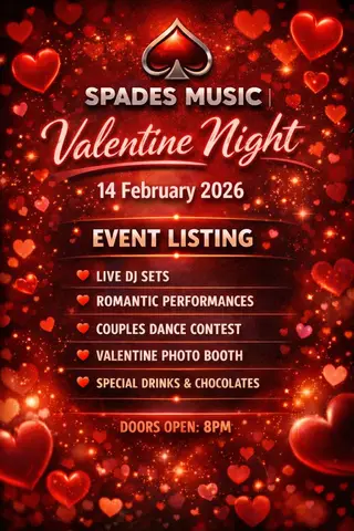 SPADES MUSIC - Valentine Night — 14 February 2026 DJ Lineup