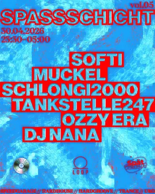 SPASSSCHICHT Vol.5 at Loop in Vienna, Austria on April 30, 2026. Featuring Schlongi2000. Trance and Techno sounds all night.