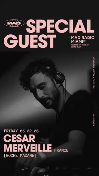 SPECIAL GUEST: Cesar Merveille, LEFOU, JOHNNY HOUSE IN on May 22, 2026 at Mad Radio Miami, Miami features Cesar Merveille performing DJ sets.