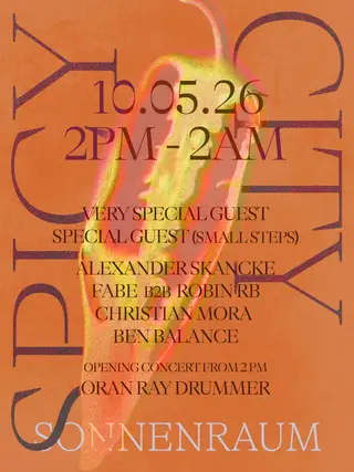 SPICY CITY w/ Very Special Guests, Alexander Skancke, Fabe, Robin Rb, Ben Balance, Christian M at Sonnenraum in Berlin, Germany on May 10, 2026. Featuring Alexander Skancke, Fabe, Robin RB, Ben Balance and 1 more. House and Electro sounds all night.