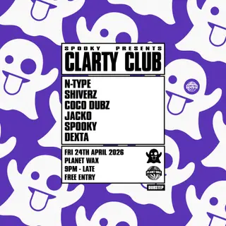 Spooky presents Clarty Club takes place at Planet Wax in London, United Kingdom on April 24, 2026. Featuring N-Type, Jacko, Spooky, Dexta. Dubstep sounds all night.