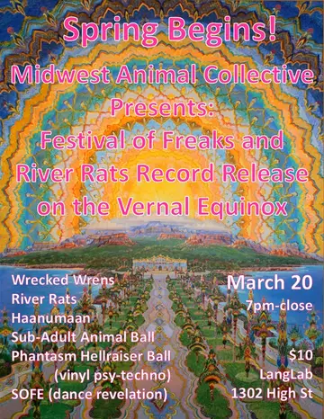 Spring Begins! Festival of Freaks and River Rats Record Release on the Vernal Equinox takes place at Langlab in Indiana, Unknown on March 20, 2026. Techno, Psytrance.