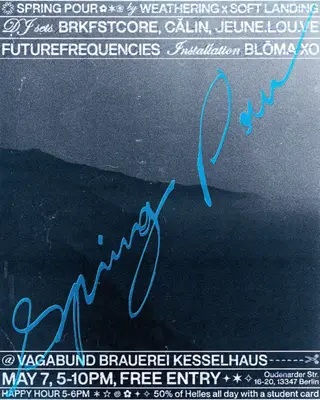 Spring Pour takes place at Vagabund Brauerei Kesselhaus in Berlin, Germany on May 7, 2026. Featuring Jeune Louve. Bass and Ambient sounds all night.