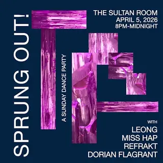 Sprung Out! feat. LEONG, Miss Hap, Refrakt, Dorian Flagrant takes place at The Sultan Room in New York City, United States on April 5, 2026. Featuring LEONG, Refrakt, Dorian Flagrant. House and Disco sounds all night.