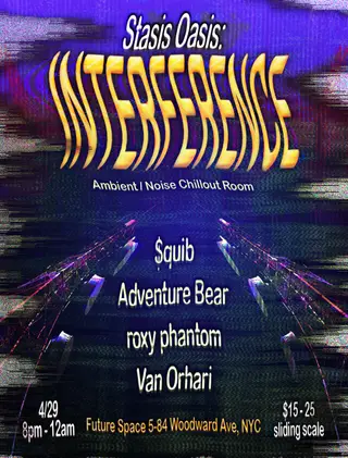 Stasis Oasis: Interference */_=-%$@&!Ambient***Noise(Chillout_room)#)!(#=$(#)*%! takes place at Fu_ture.Space in New York City, United States on April 29, 2026. Featuring Van Orhari. Ambient and Experimental sounds all night.