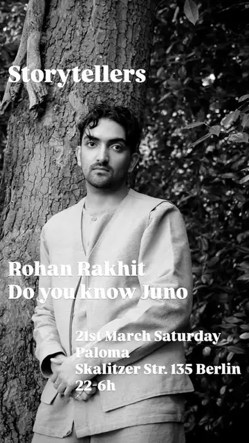Storytellers takes place at Paloma in Berlin, Germany on Saturday, March 21, 2026. Featuring Rohan Rakhit, Do you know Juno. House.