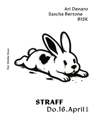 STRAFF – Thursday Techno / 5€ before 1 AM takes place at Der Weiße Hase in Berlin, Germany on April 16, 2026. Featuring Bisk. Techno sounds all night.