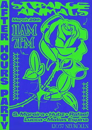 Experience Strange Animals Sunday After Hours Party (11 AM - 7 PM) 2026, a significant moment in Berlin, Germany's electronic music calendar on Sunday, March 29, 2026, featuring S.Moreira, Rafael, Mati Espina and 1 more artists. This event brings together artists and fans who share a passion for dance music culture and Breakbeat, House sounds.