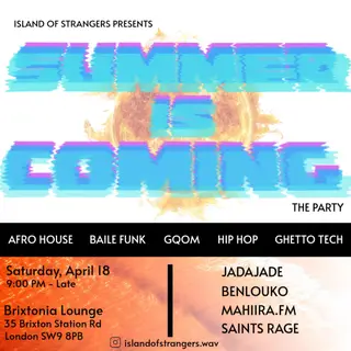 SUMMER IS COMING - THE PARTY takes place at Brixtonia Lounge in London, United Kingdom on April 18, 2026. Featuring DJ BenLouko. Baile Funk and Afro House sounds all night.