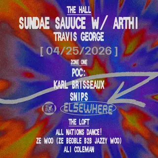 Sundae Sauuce with Arthi, Travis George, POC: Karl Brisseaux, Snips + more takes place at Elsewhere in New York, United States on April 25, 2026. Featuring Ali Coleman.