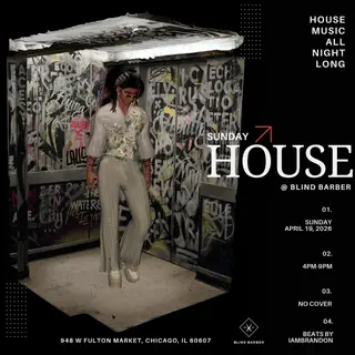 Sunday House @ Blind Barber on April 19, 2026 at Blind Barber, Chicago features iamBrandon performing house DJ sets.