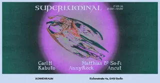 Superluminal takes place at Sonnenraum in Berlin, Germany on April 17, 2026. Featuring Carl H, KABUTO, Matthias (1), So-Fi and 2 more.