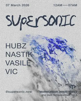 SUPERSONIC takes place at Marmorbar in Berlin, Germany on March 7, 2026. Featuring Vasile, Vic (FR), Hubz, Nastik (UA). House and Tech House sounds all night.