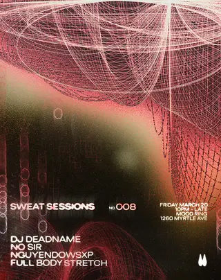 SWEAT SESSION N°8 with DJ DEADNAME, No Sir, nguyendowsXP, & Full Body Stretch takes place at Mood Ring in New York, United States on March 20, 2026. Featuring DJ DEADNAME, No Sir, nguyendowsXP, Full Body Stretch.