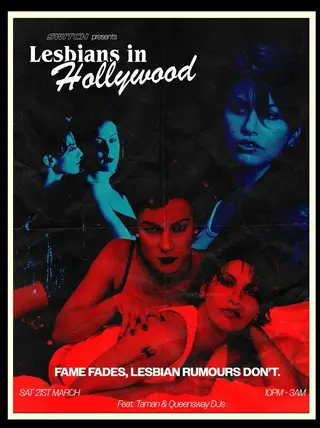 SWITCH presents: Lesbians in Hollywood takes place at Q U A RR Y in Liverpool, United Kingdom on March 21, 2026. Featuring TAMAN (2). Club sounds all night.