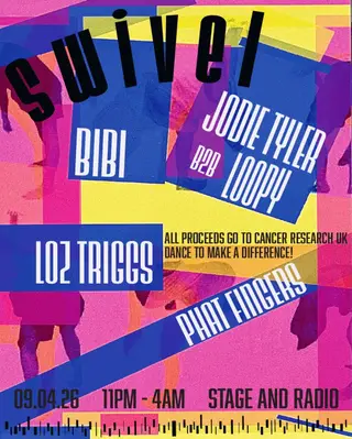 Swivel takes place at Stage and Radio in Manchester, United Kingdom on April 9, 2026. Electro and Italo Disco sounds all night.